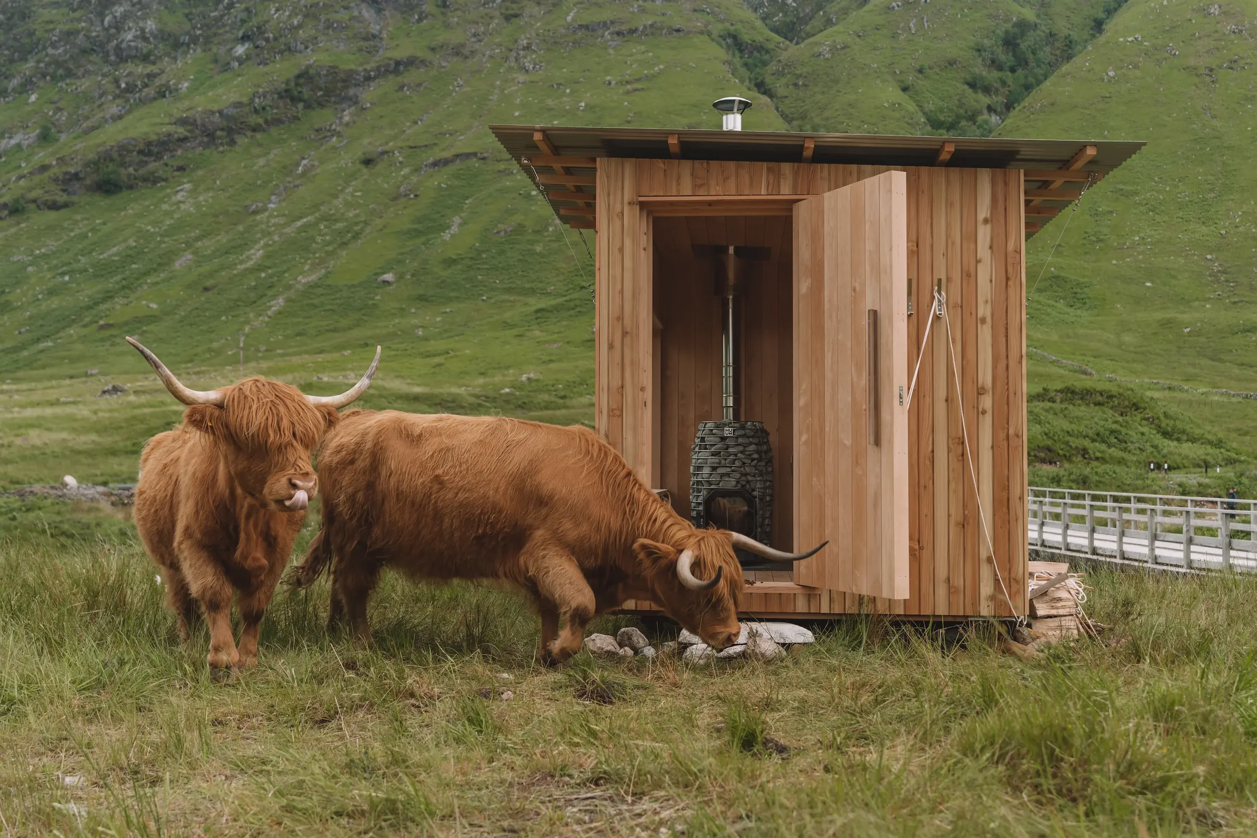 Our handcrafted outdoor saunas and off-grid cabins are inspired by the wild weather of the Scottish Highlands. Scotland’s unpredictable elements are our constant companions: sudden downpours, lingering winters, and unforgiving coastlines. Our saunas and cabins aren’t just made to withstand these extreme elements; they are built to thrive within them - through considered materials and thoughtful detailing.